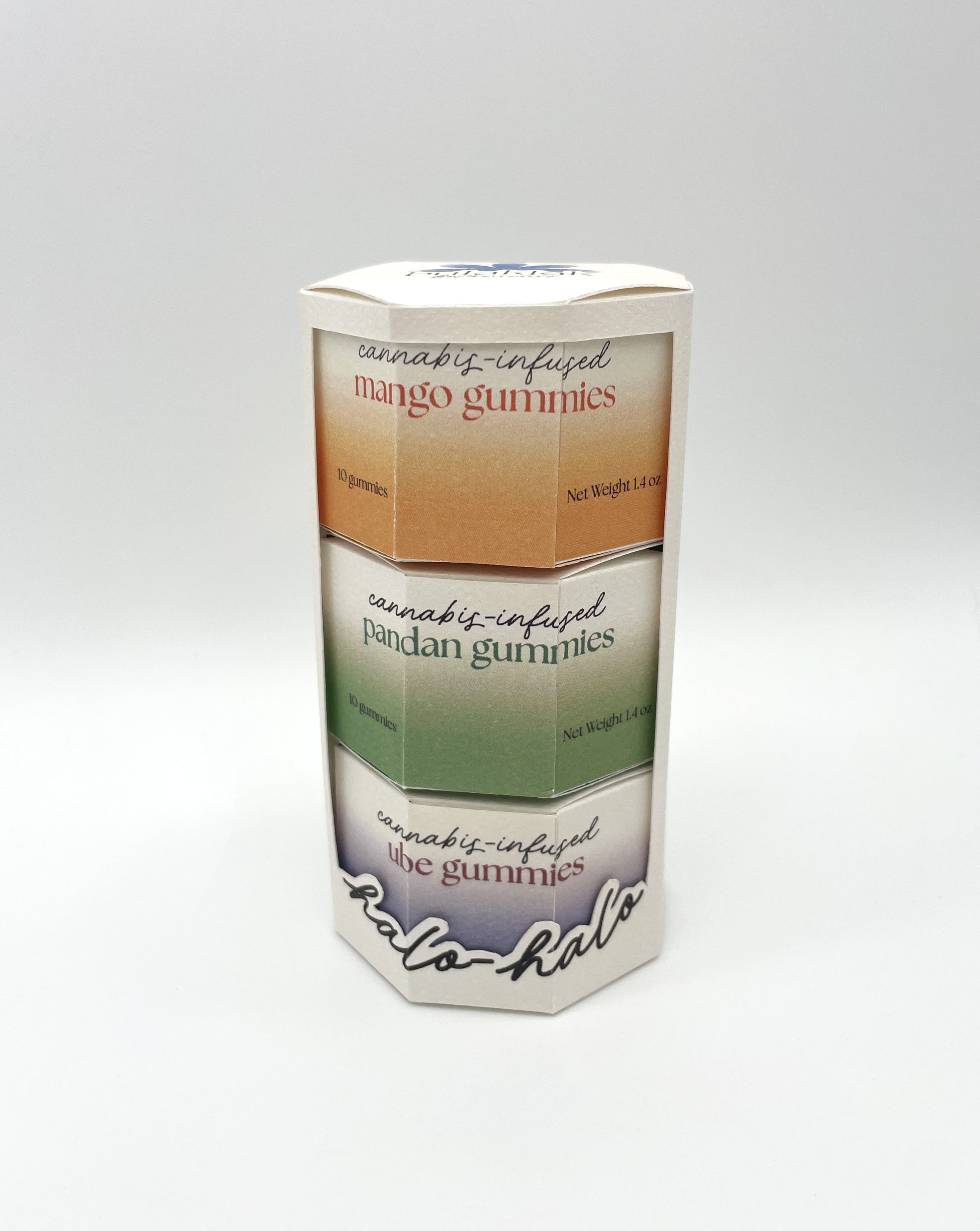 This project was created for my Experimental Typography class. Students were tasked with creating a concept brand and packaging. For this project, I chose to create an edible cannabis brand targeted towards the Filipino diaspora that emphasizes the relaxing elements and health benefits of strains like CBD and highlights Filipino culture in its flavor profiles.